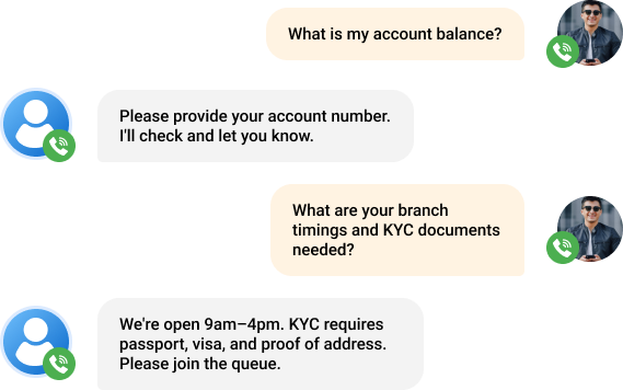 Instant responses for balances, services, and branch details