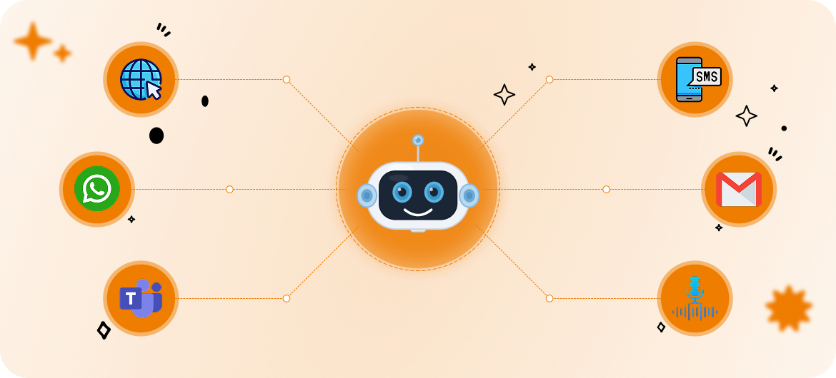 The Chatbot for Banking integrates seamlessly across mobile apps, websites, WhatsApp, SMS, email, voice, and social platforms. Internally, it connects with enterprise collaboration tools such as Microsoft Teams and Slack. Voice-enabled capabilities ensure accessibility across phone and hands-free environments.